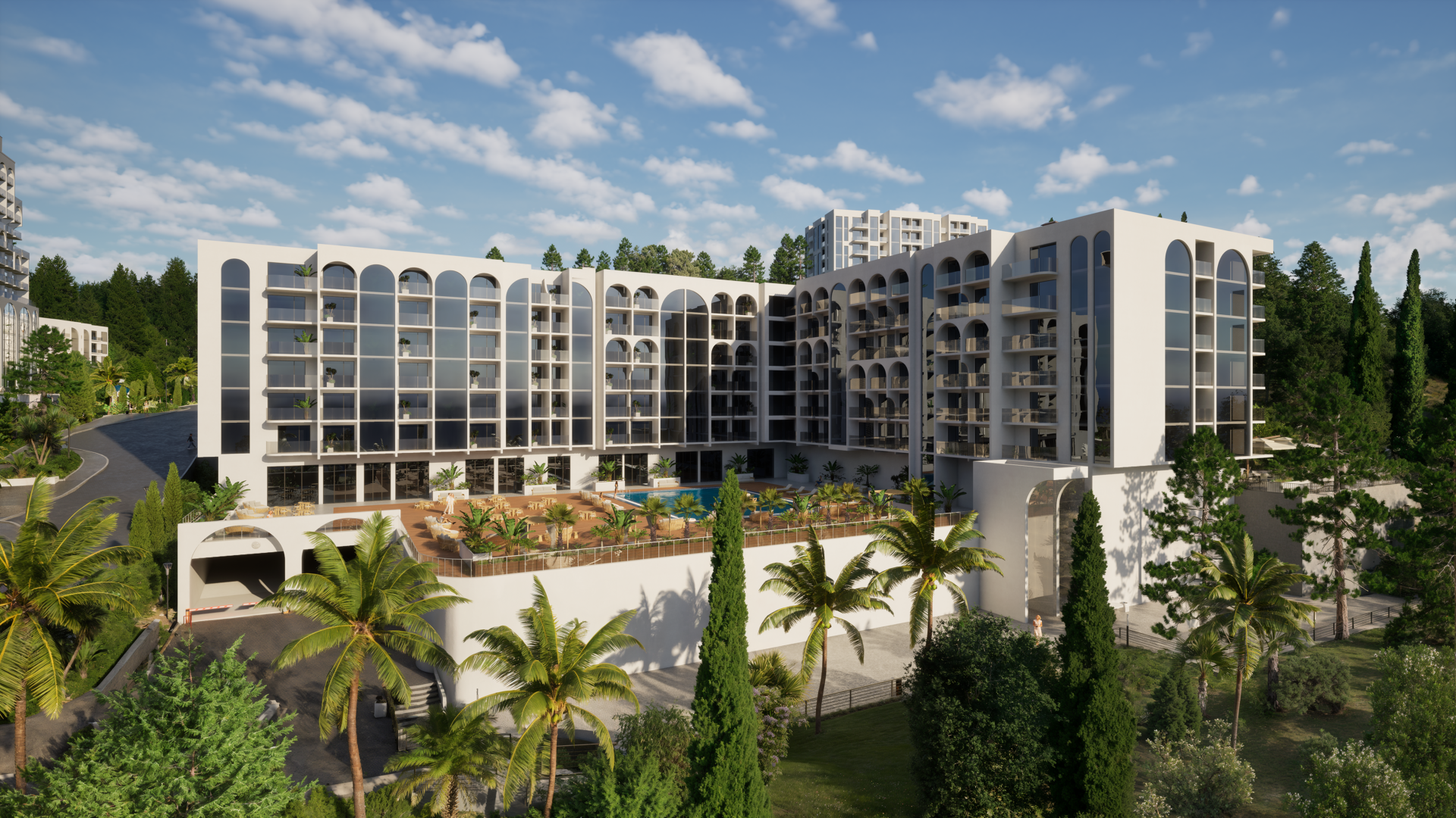 ГК «Белые Ночи» — собственная эко-резиденция в премиальном санаторно-гостиничном комплексе, на первой береговой линии Чёрного моря, всего в 20 минутах от центра Сочи. Проект создан на месте легендарного советского санатория и органично интегрирован в зелёную курортную зону.