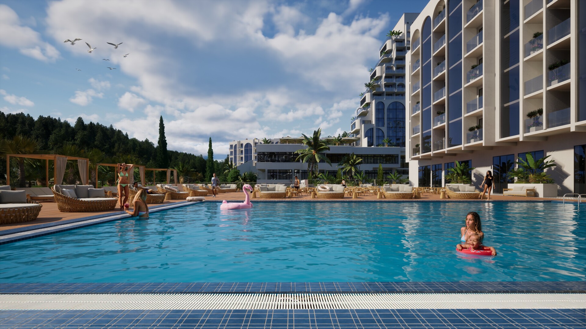 Апартаменты полностью готовы к заселению: высококлассный ремонт, стильная мебель и современная техника включены. Панорамное остекление, открытые виды на море или зелёный парк. Интерьеры продуманы до мелочей — от отделки до эргономики пространства.
