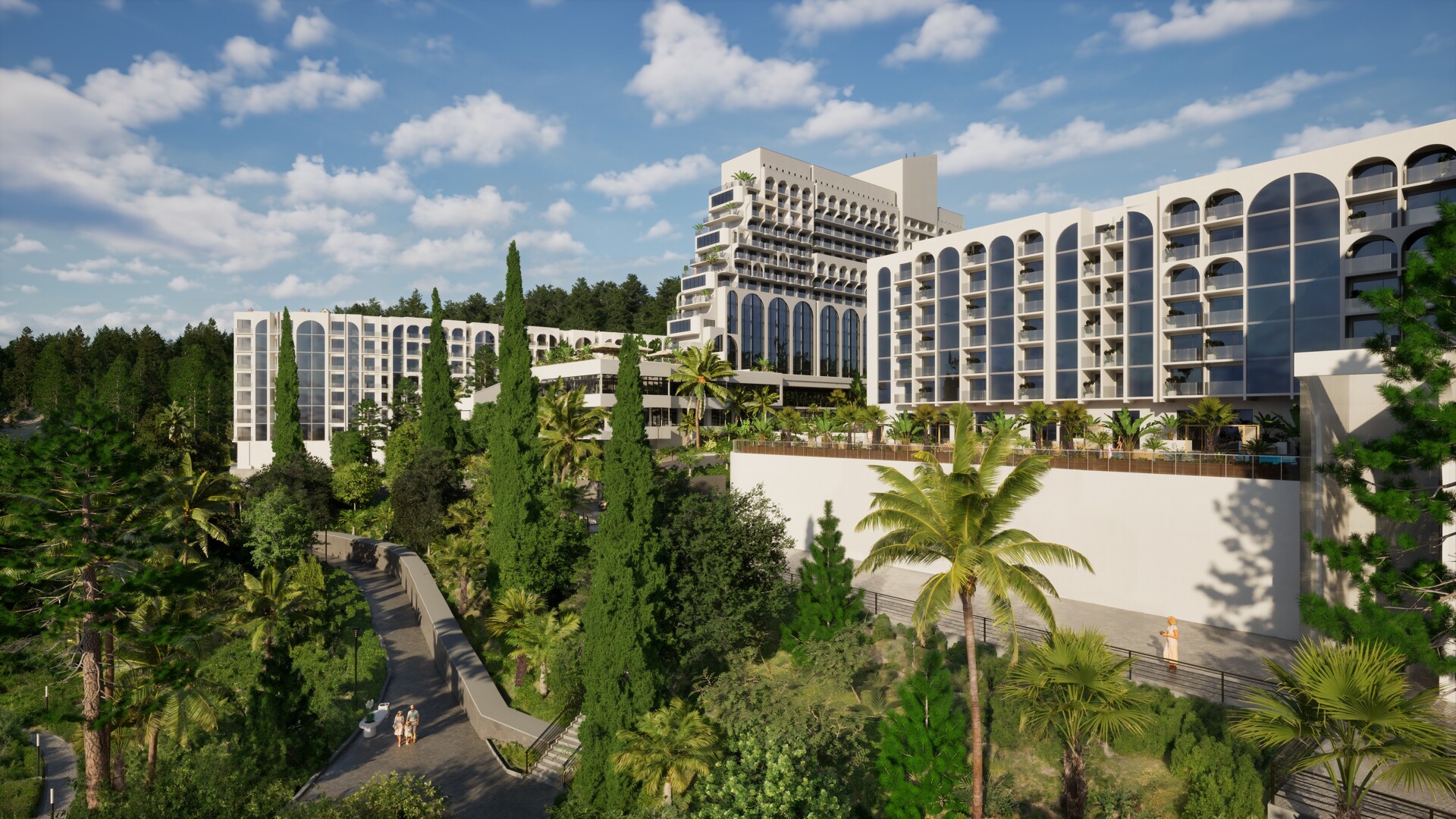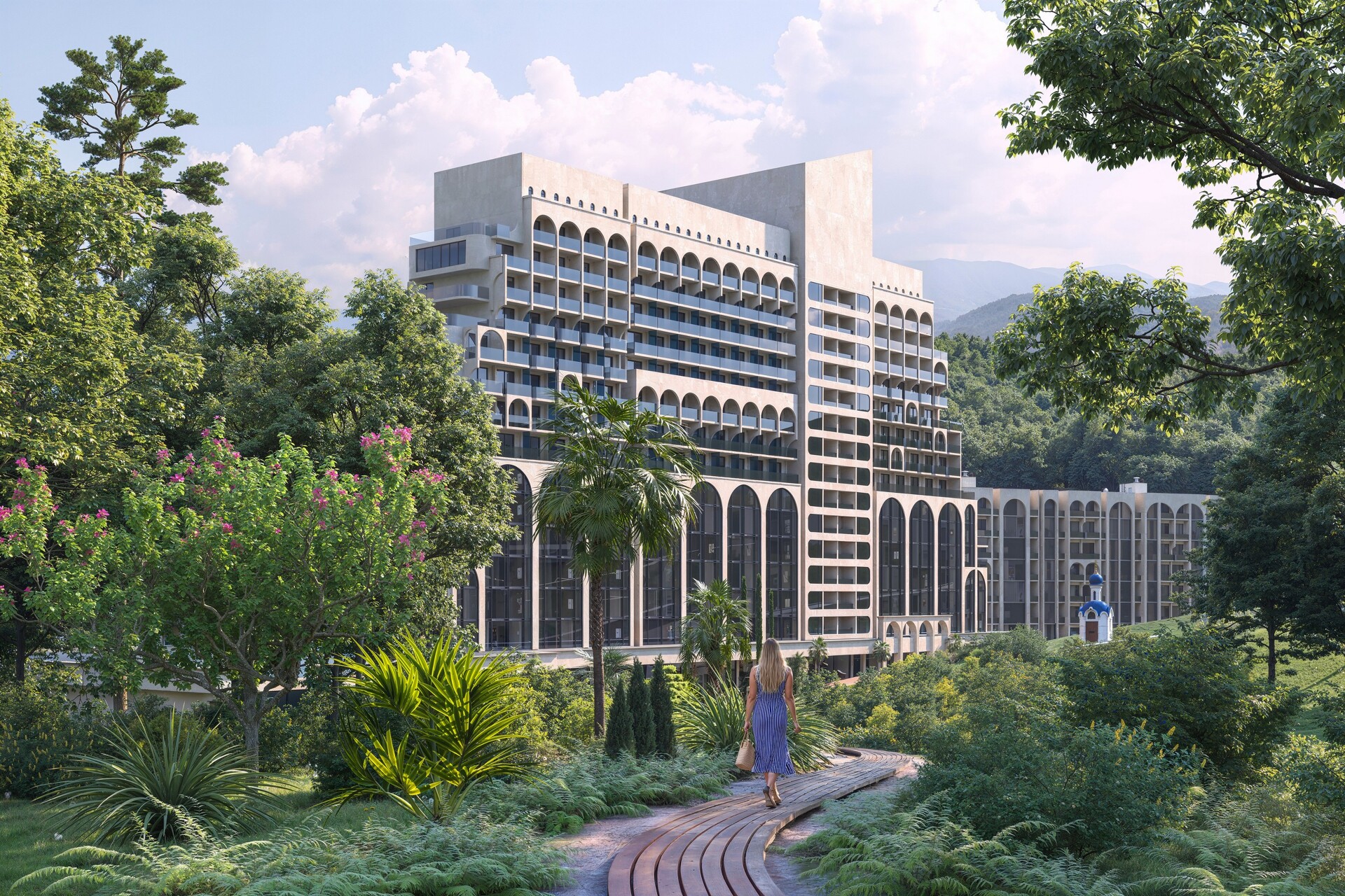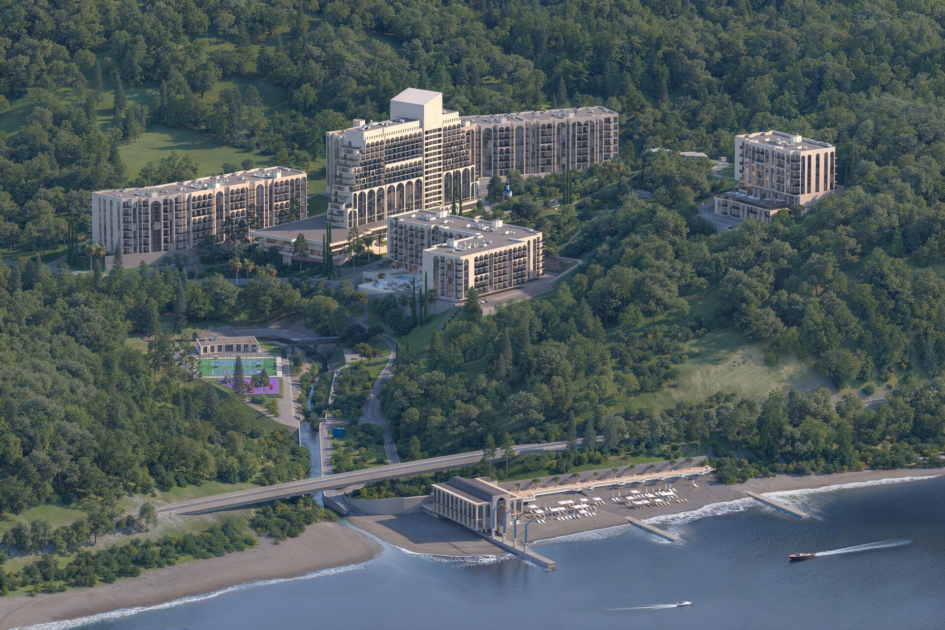 Комплекс располагается на 10 га закрытой, особо охраняемой территории, 7 гектаров которой занимает реликтовый дендропарк с редкими субтропическими растениями. Панорамные виды, зрелая зелень и продуманная ландшафтная архитектура формируют ощущение приватного курорта